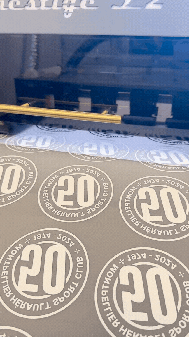 - Impression sur film : Le design est imprimé sur un film à l'aide d'une imprimante spéciale équipée d'encre textile (souvent à base d'encre pigmentée).